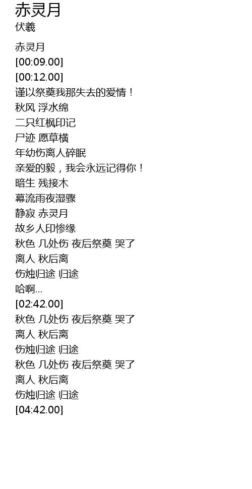 | [04:08.00] | 秋色 几处伤 夜后祭奠 哭了 |