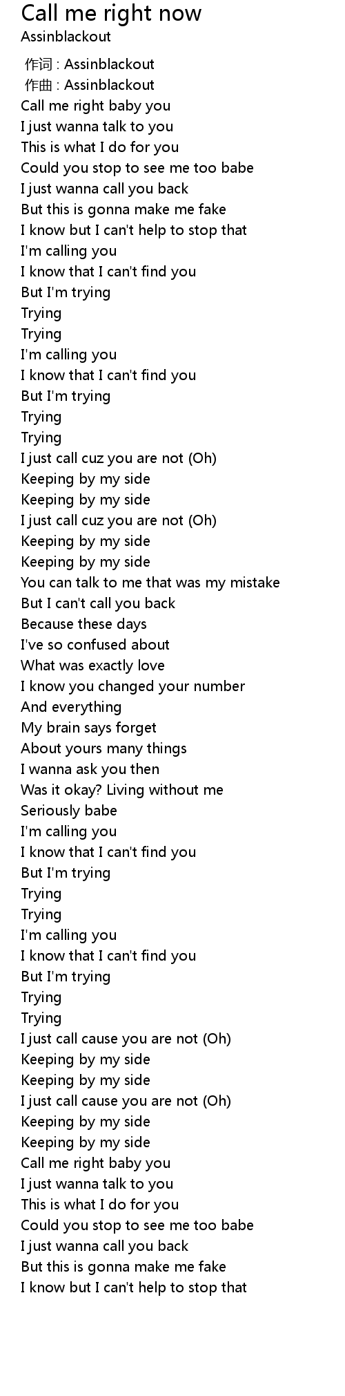 | [00:22.592] | Call me right baby you |