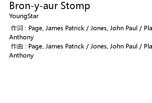 | [00:00.000] | 作词 : Page, James Patrick / Jones, John Paul / Plant, Robert Anthony |
