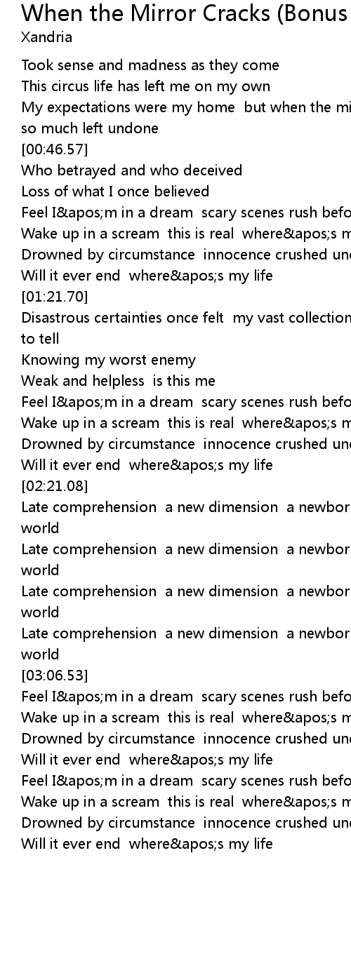 My expectations were my home but when the mirror cracks there's so much left undone |