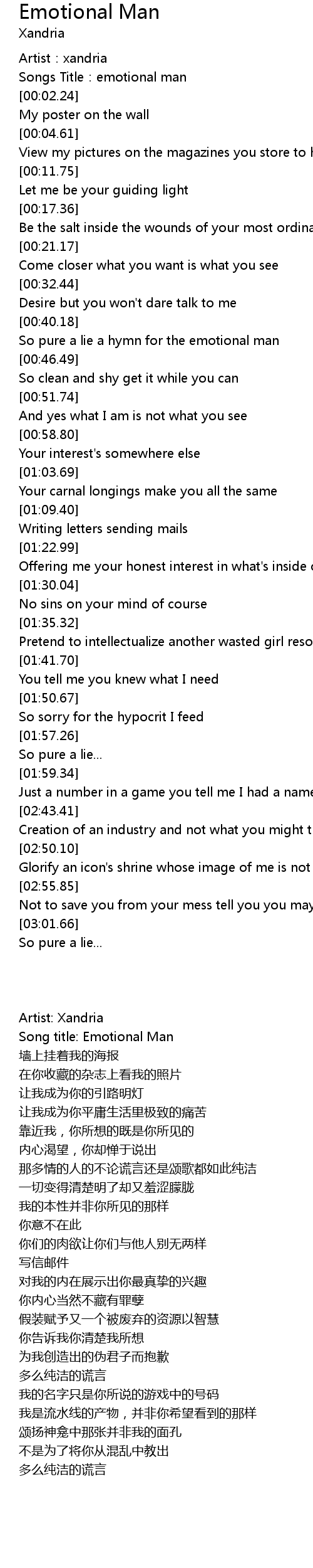 | [00:40.99] | So pure a lie a hymn for the emotional man |