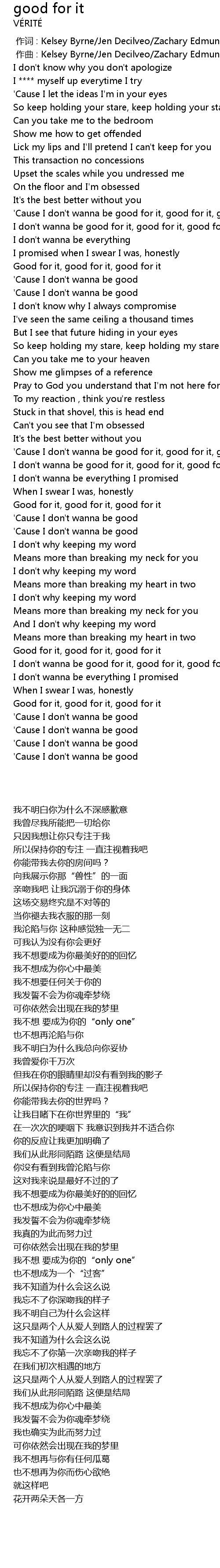 | [00:53.71] | 'Cause I don't wanna be good for it, good for it, good for it |