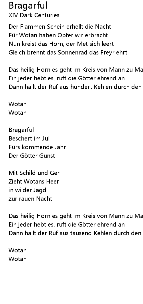 | Nun kreist das Horn, der Met sich leert | |