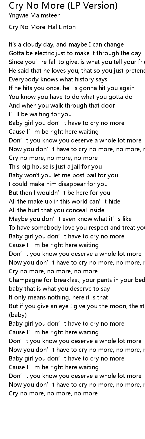 | Cry no more, no more, no more | |
