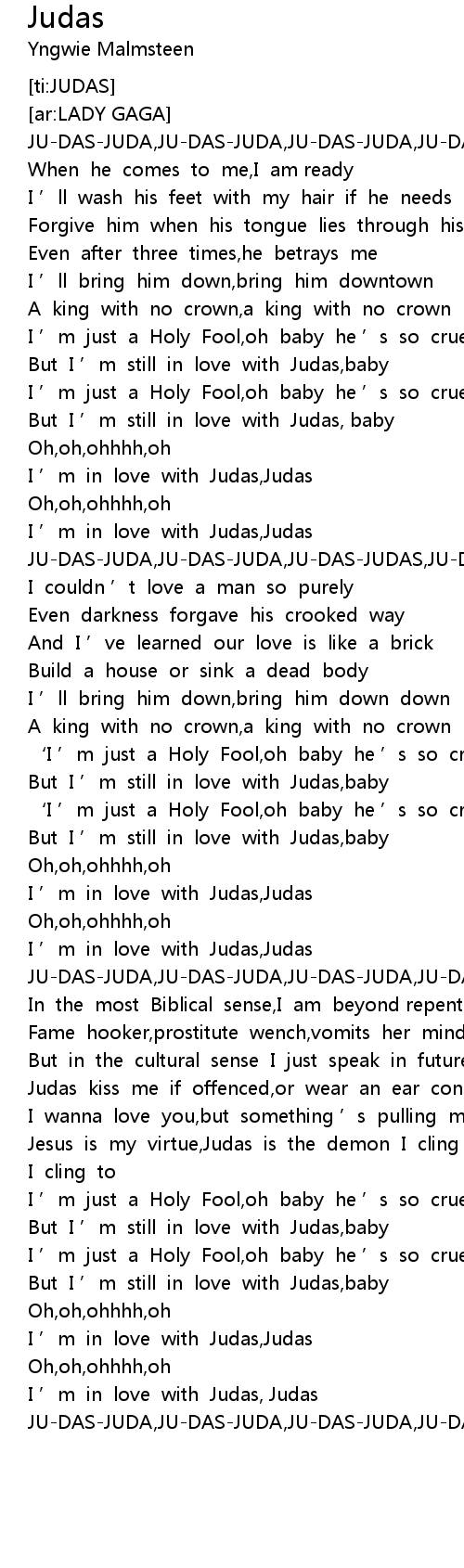 | [02:15.318] | But I ' m still in love with Judas, baby |