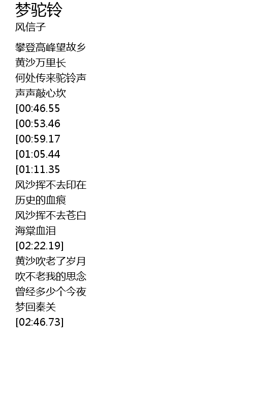 | [00:35.24] | 何处传来驼铃声 |