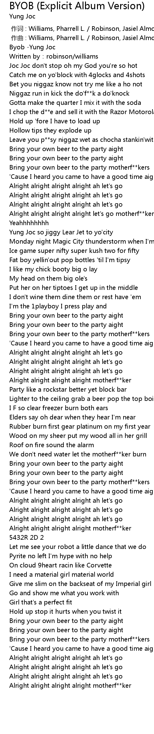 | [02:09.545] | Bring your own beer to the party motherf**kers |