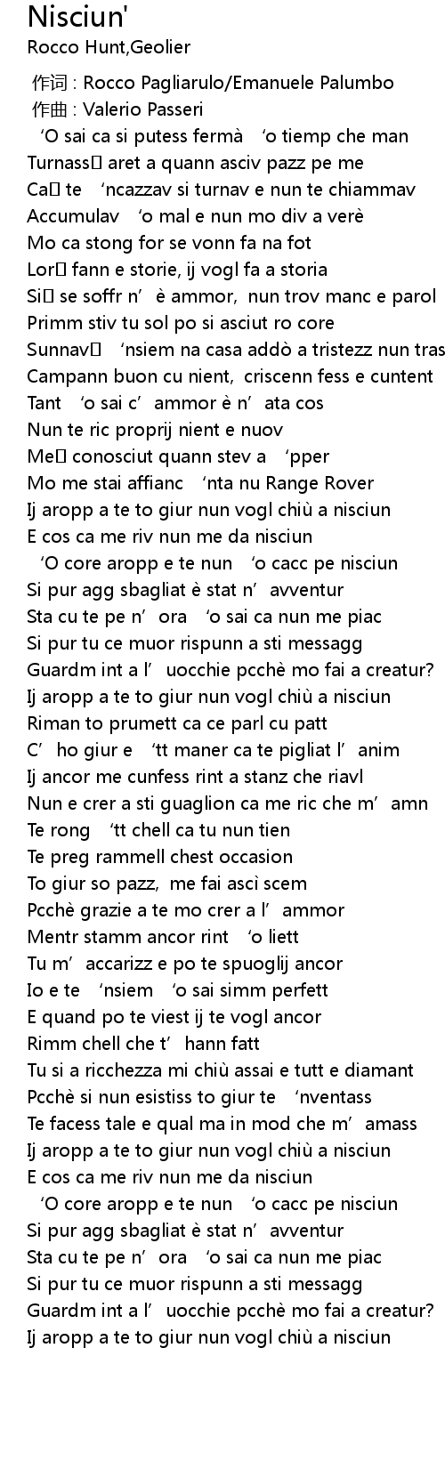 | [00:00.000] | zuò cí : Rocco Pagliarulo Emanuele Palumbo |