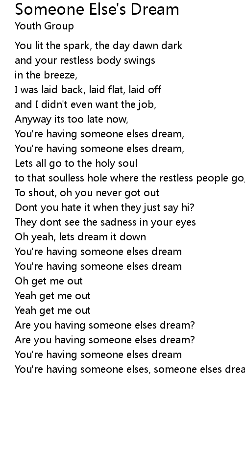You're having someone elses, someone elses dream.. |