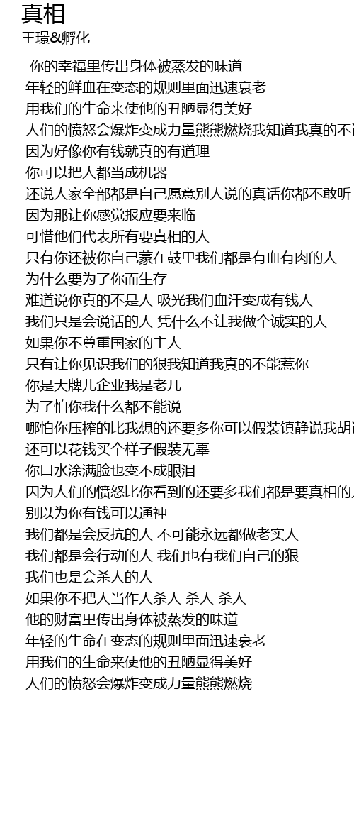| 难道说你真的不是人 吸光我们血汗变成有钱人 | |
