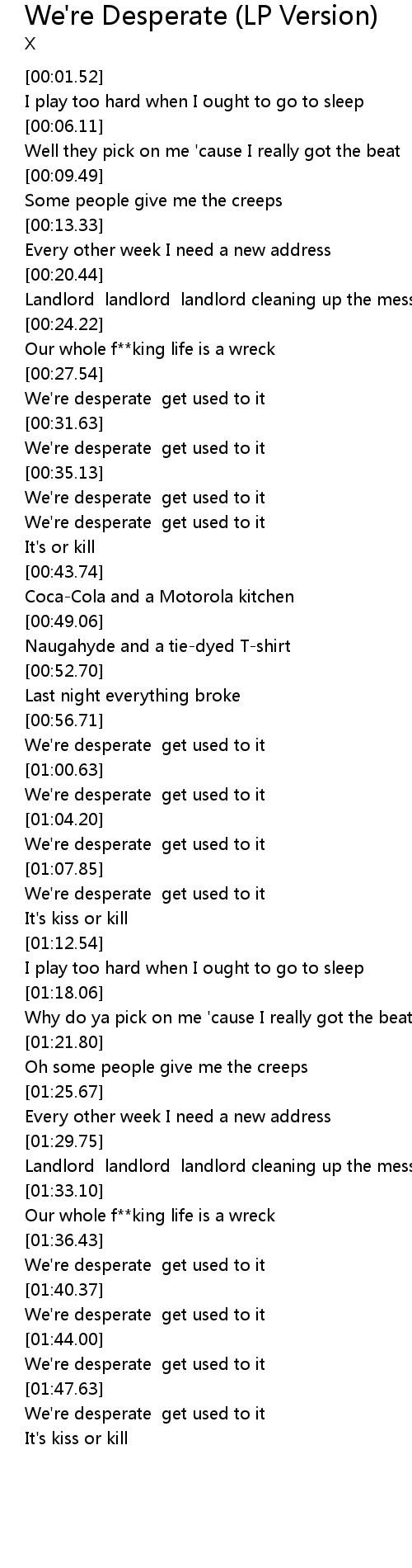 | [01:48.61] | We're desperate get used to it |