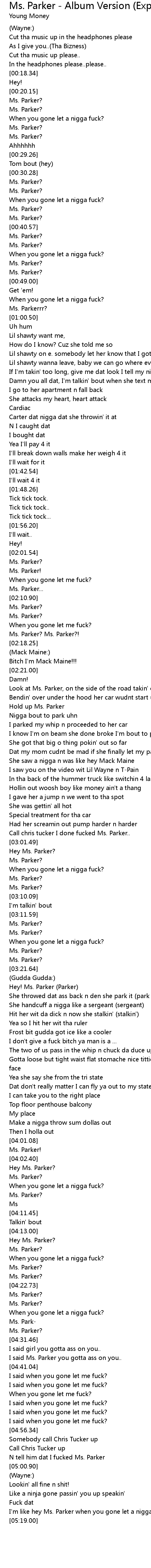 I'm like hey Ms. Parker when you gone let a nigga fuck? Ms. Parker! |