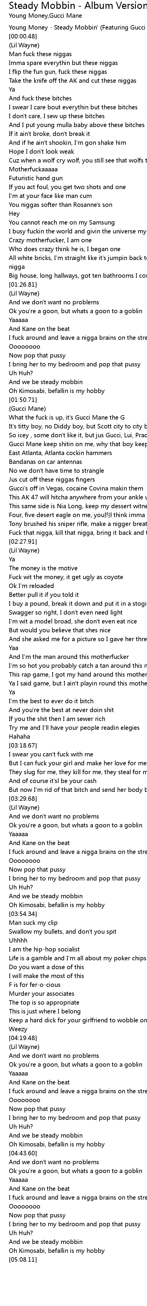 | [00:-7.02] | Young Money Steady Mobbin' Featuring Gucci Mane |