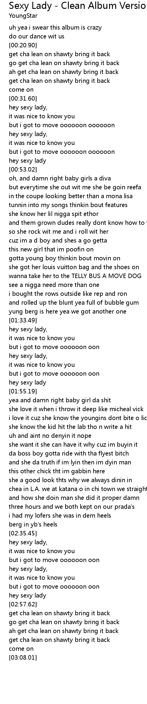go get cha lean on shawty bring it back |