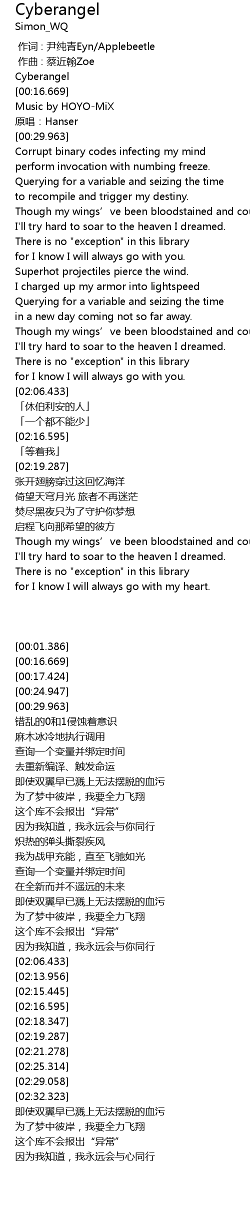 | [02:37.077] | Though my wings' ve been bloodstained and could never rid, |