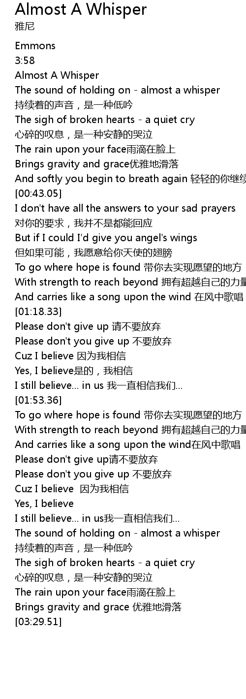 | [00:01.49] | Almost A Whisper |