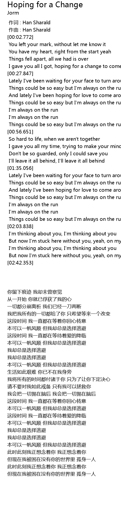 | [00:00.000] | 作词 : Han Sharald |
