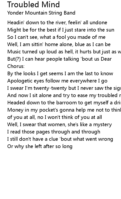 And now I sit alone and try to ease my troubled mind |