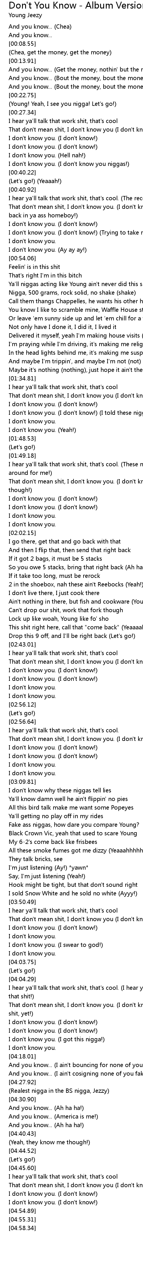 That don't mean shit, I don't know you. (I don't know!) (That's cool though!) |