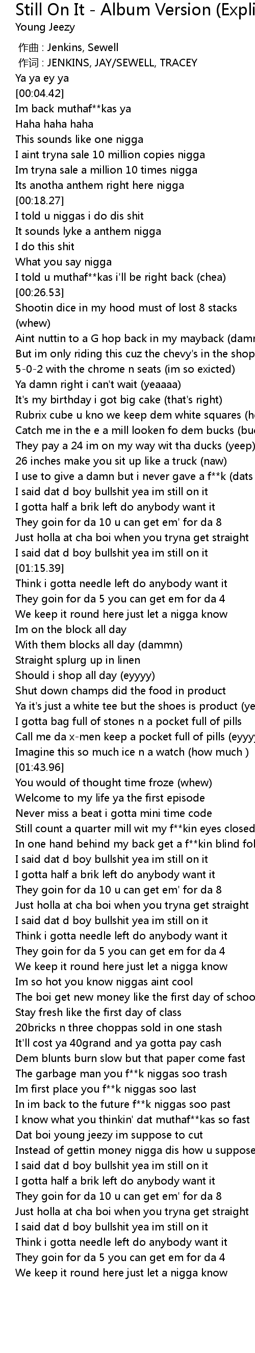 | [02:53.35] | Dat boi young jeezy im suppose to cut |