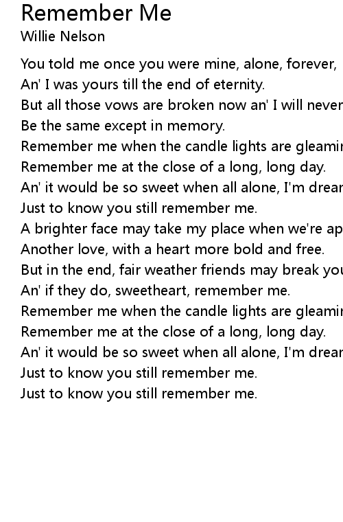Remember me when the candle lights are gleamin'. |
