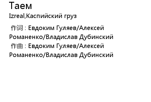作词 : Евдоким Гуляев/Алексей Романенко/Владислав Дубинский