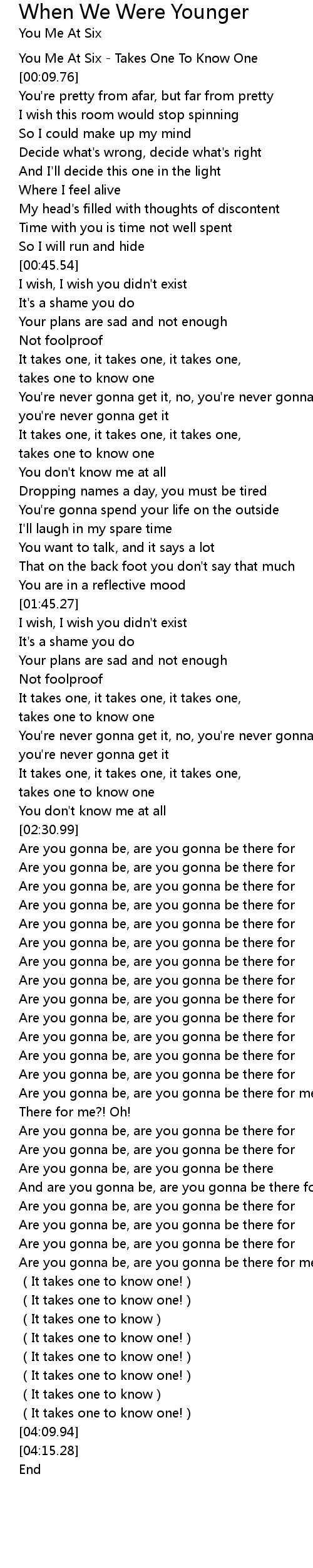| [00:00.00] | You Me At Six Takes One To Know One |