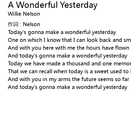 | Song | A Wonderful Yesterday |