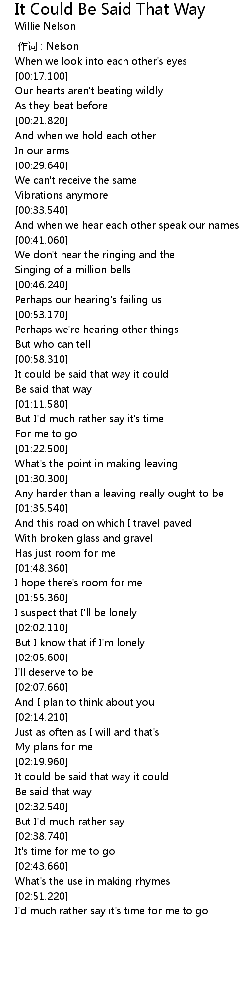 | [02:52.430] | I'd much rather say it's time for me to go |