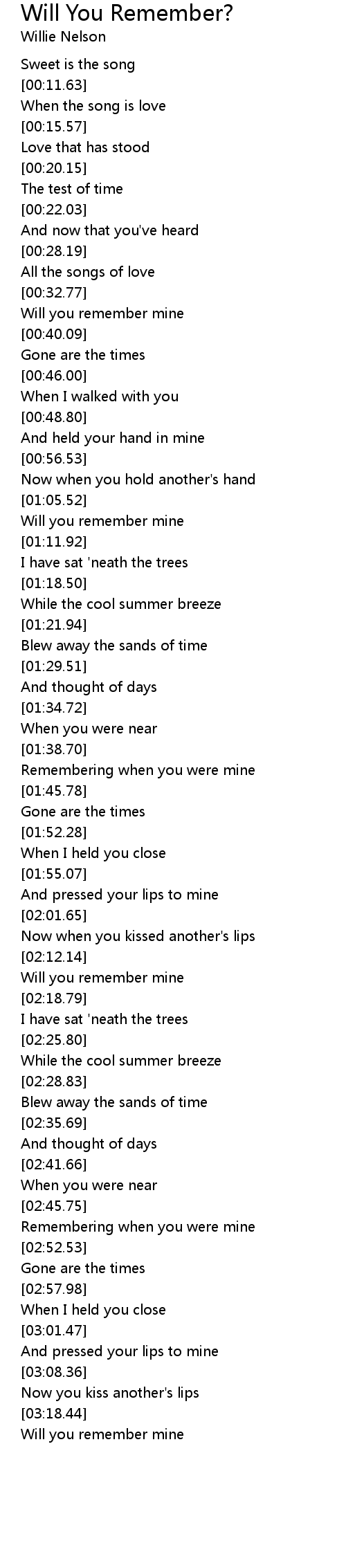 Will you remember mine |