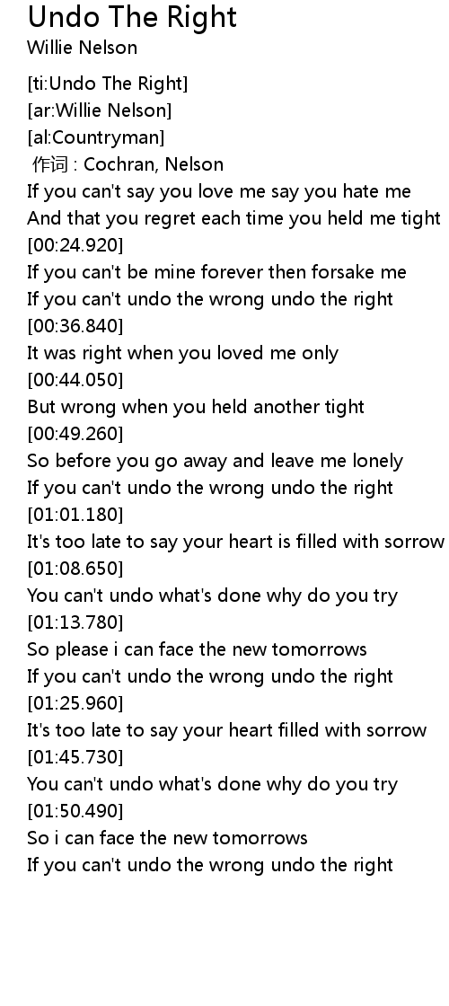 | [00:32.270] | If you can't undo the wrong undo the right |