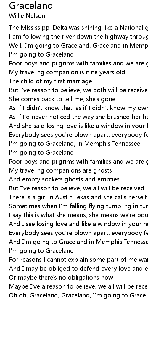 Oh oh, Graceland, Graceland, I'm going to Graceland |