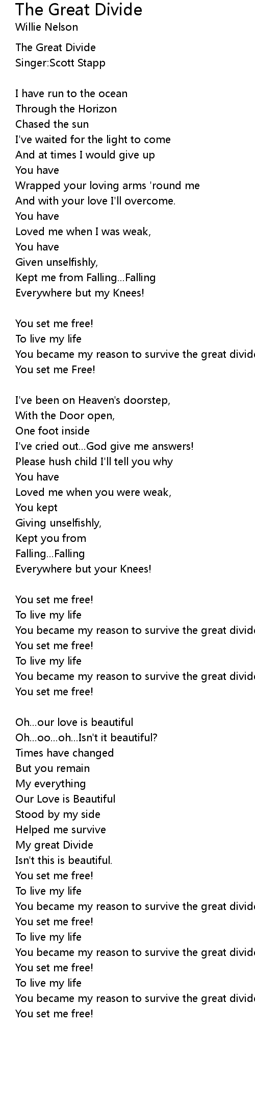 You became my reason to survive the great divide |