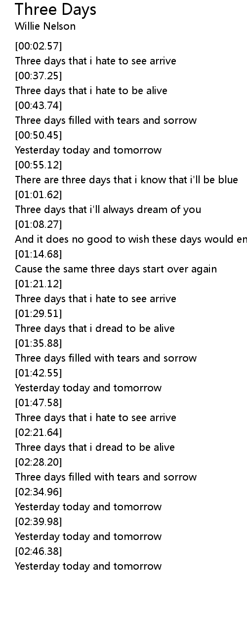 Cause the same three days start over again |