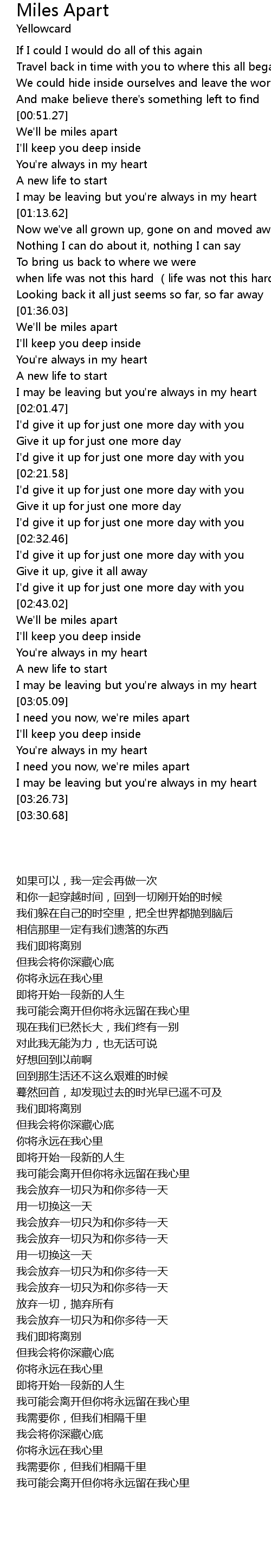| [02:57.74] | I may be leaving but you're always in my heart |
