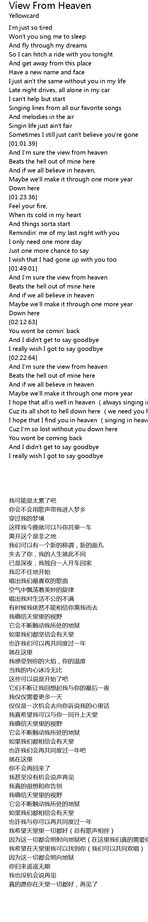 | [01:51.41] | And I' m sure the view from heaven |