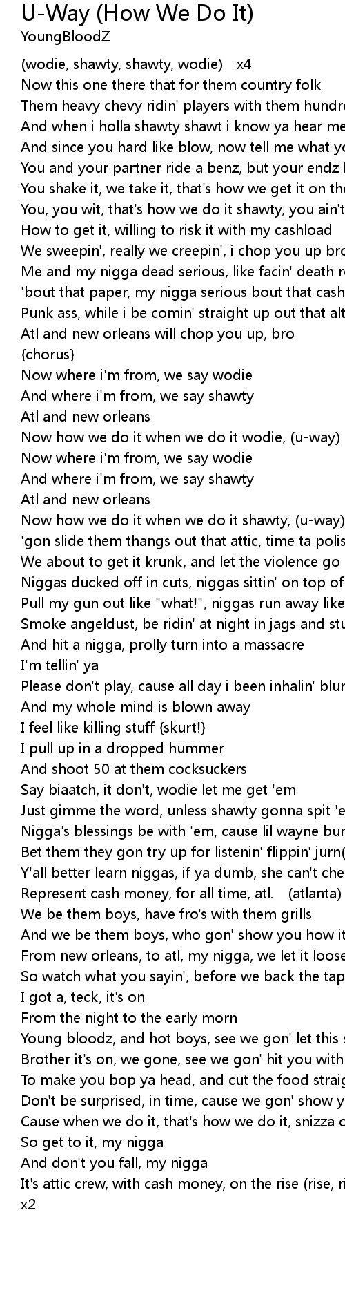 | Now how we do it when we do it wodie, (u-way) | |