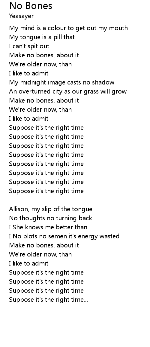 Make no bones, about it |
