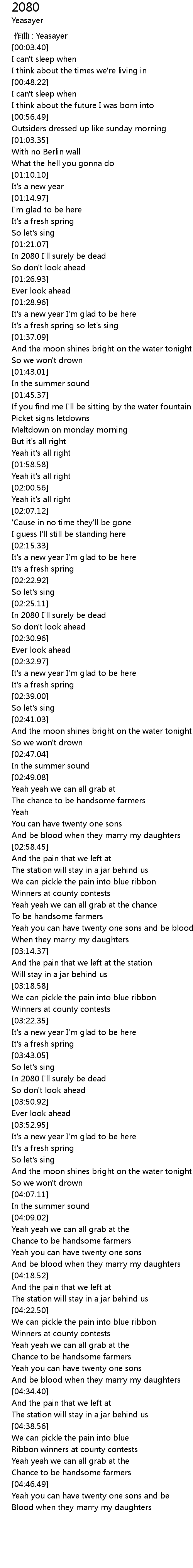 | [01:21.62] | In 2080 I' ll surely be dead |