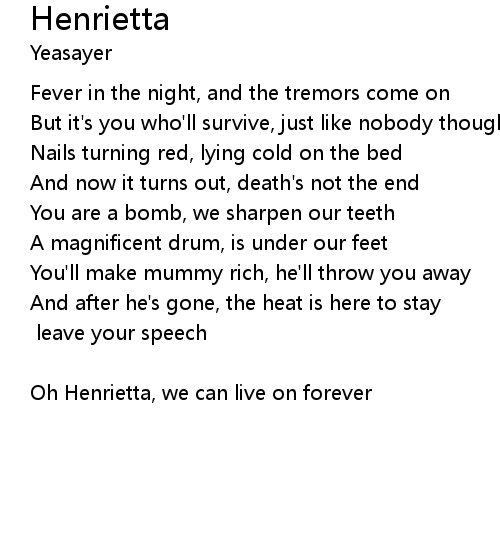 | Oh Henrietta, we can live on forever |
