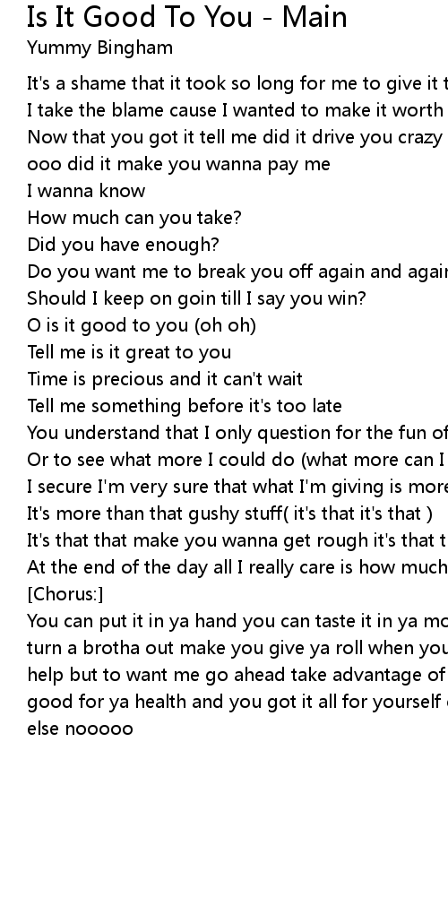 | Song | Is It Good To You - Main |