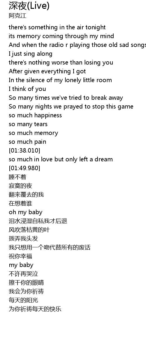 | [00:45.220] | And when the radio r playing those old sad songs |