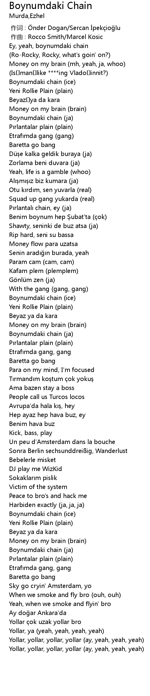 | [00:33.70] | Pırlantalı chain, ey (ja) |