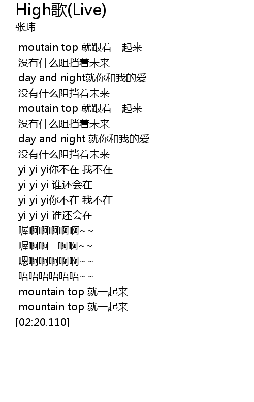| [00:45.870] | moutain top jiù gēn zhe yì qǐ lái |