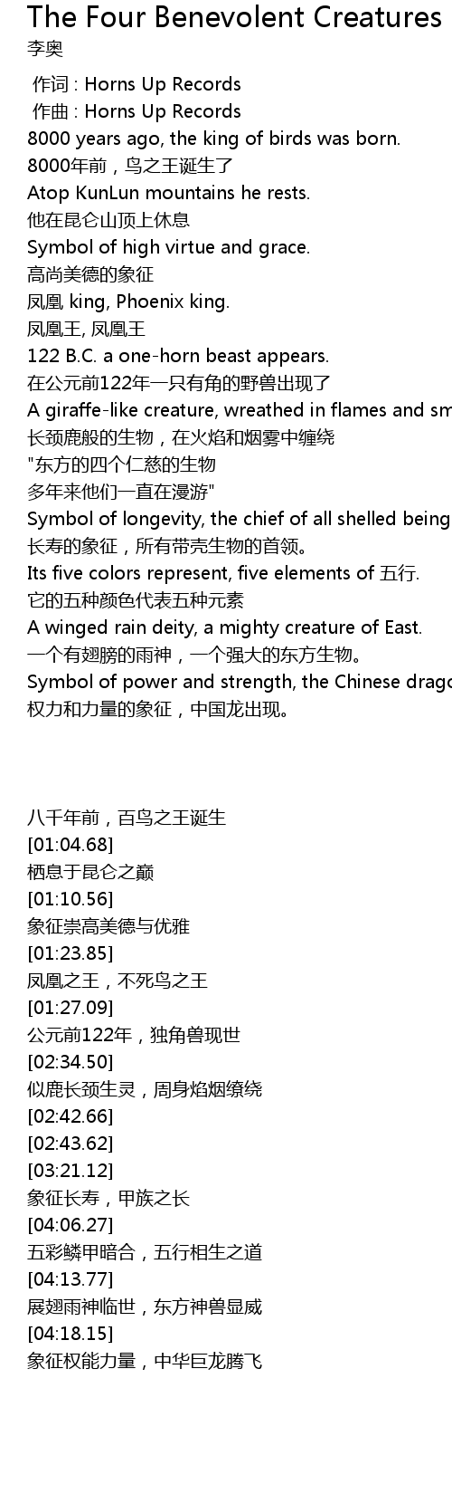 | [02:43.62] | "东方的四个仁慈的生物 |