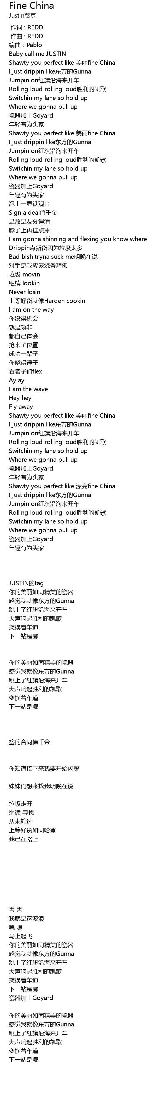 | [02:02.419] | Shawty you perfect like 漂亮fine China |