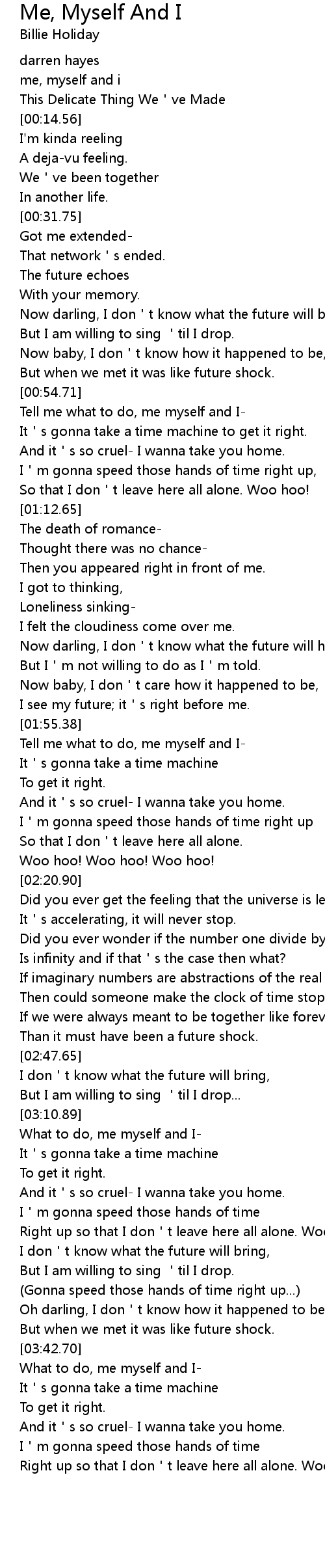 | [00:07.36] | me, myself and i |