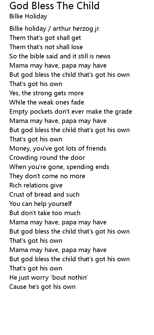 But god bless the child that's got his own |