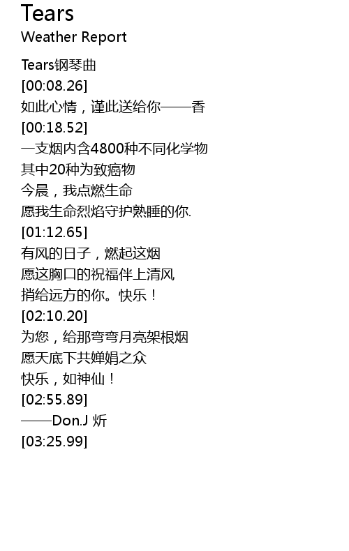 | [00:33.84] | 一支烟内含4800种不同化学物 |