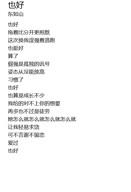 | [00:02.510] | 也好 |